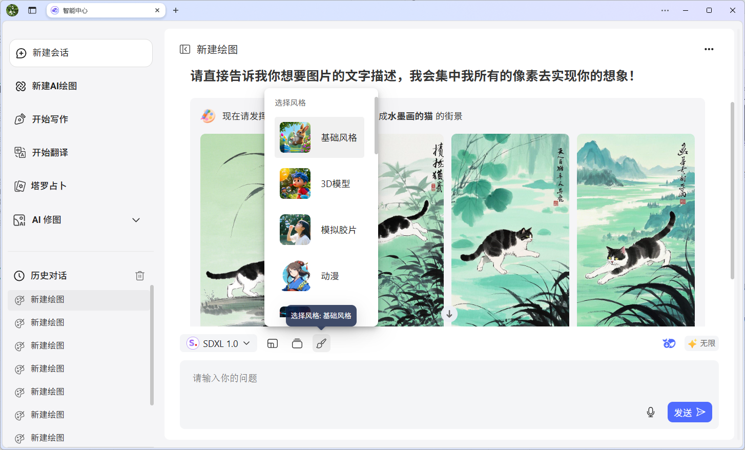 没有特别需求? 可以先使用 【基础风格】,它会根据你的提示词给出一个最通用的结果。